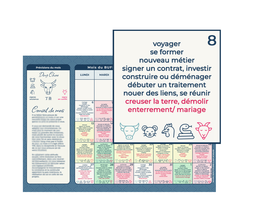 Chaque saison, mois ou jour porte une énergie particulière qui peut vous soutenir ou vous ralentir, selon votre signe astrologique chinois.
